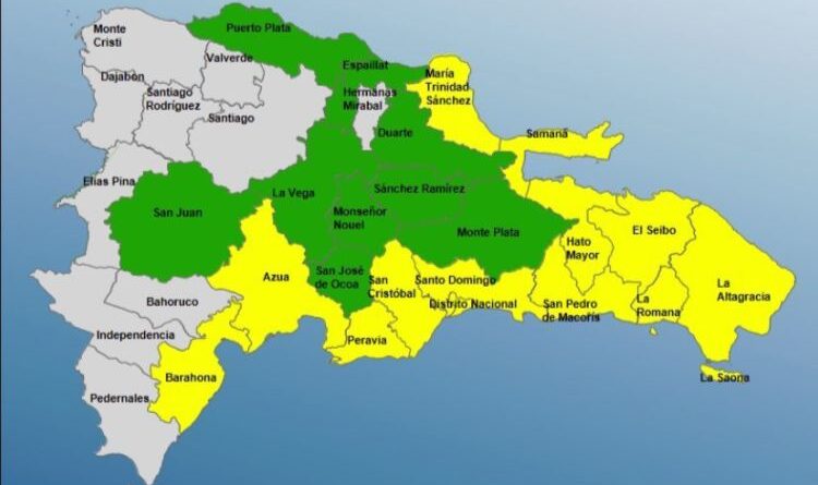 En ese sentido, el COE colocó doce provincias en alerta amarilla y nueve en verde ante posibles crecidas de ríos, arroyos y cañadas, así como, inundaciones urbanas y deslizamiento de tierra.