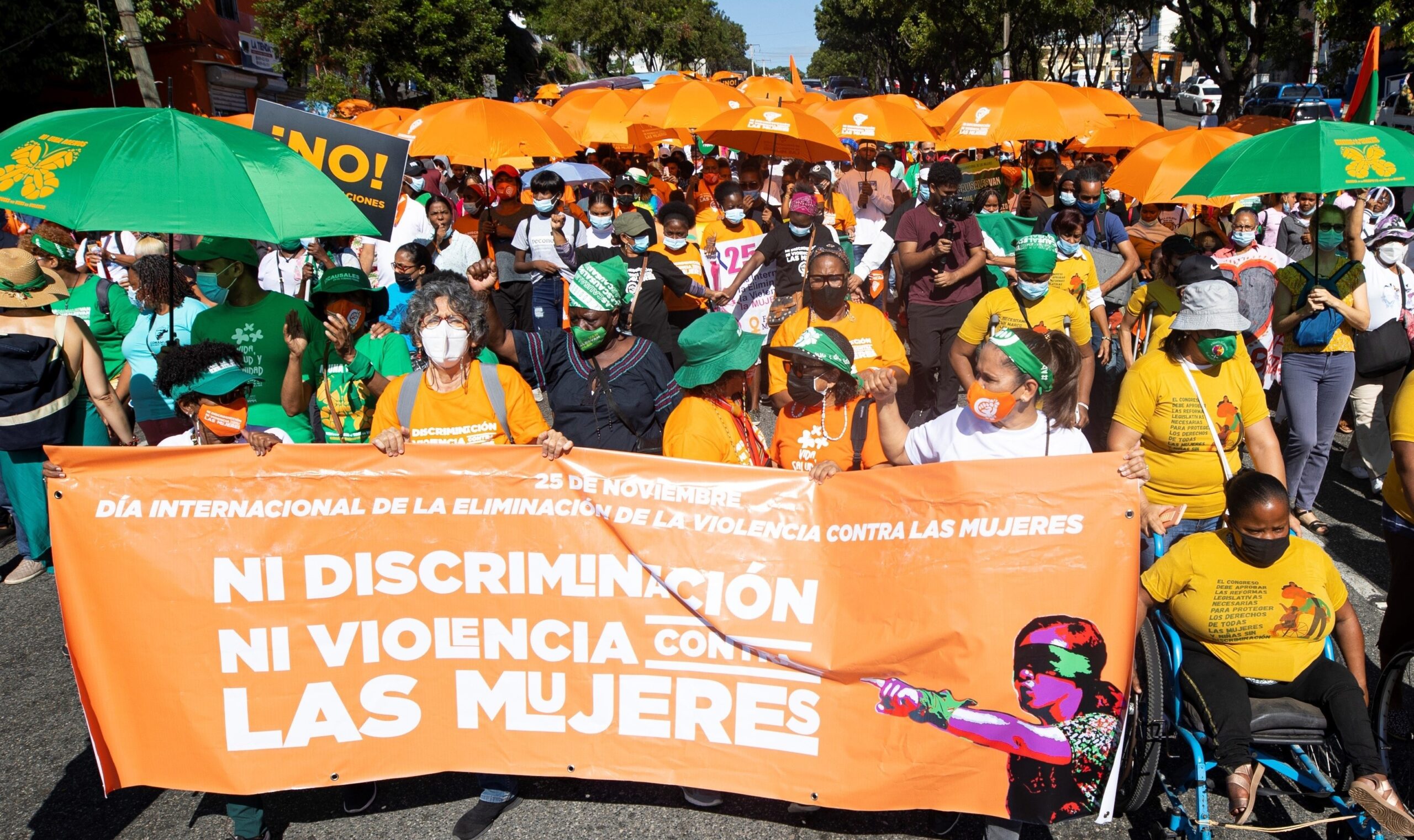 La marcha pacífica que sirvió para expresar de manera masiva las denuncias de todas las mujeres violentadas, uniformó a sus manifestantes con colores verde y naranja, y atuendos de mariposas, mientras avanzaban a ritmo de música desde la avenida Mirador Sur hasta el Centro de Los Héroes, donde culminó con una presentación artística en la que además de cánticos, se expuso en tarima un extracto del musical Mariposas de Acero, en alusión al asesinato de las Hermanas Mirabal, Patria, Minerva y María Teresa.