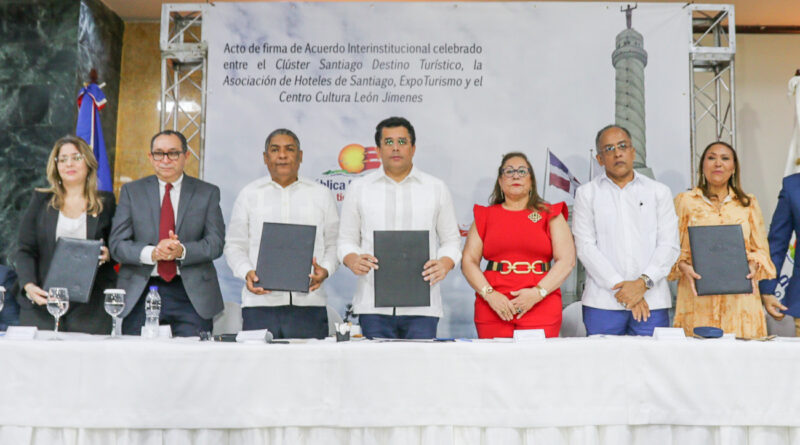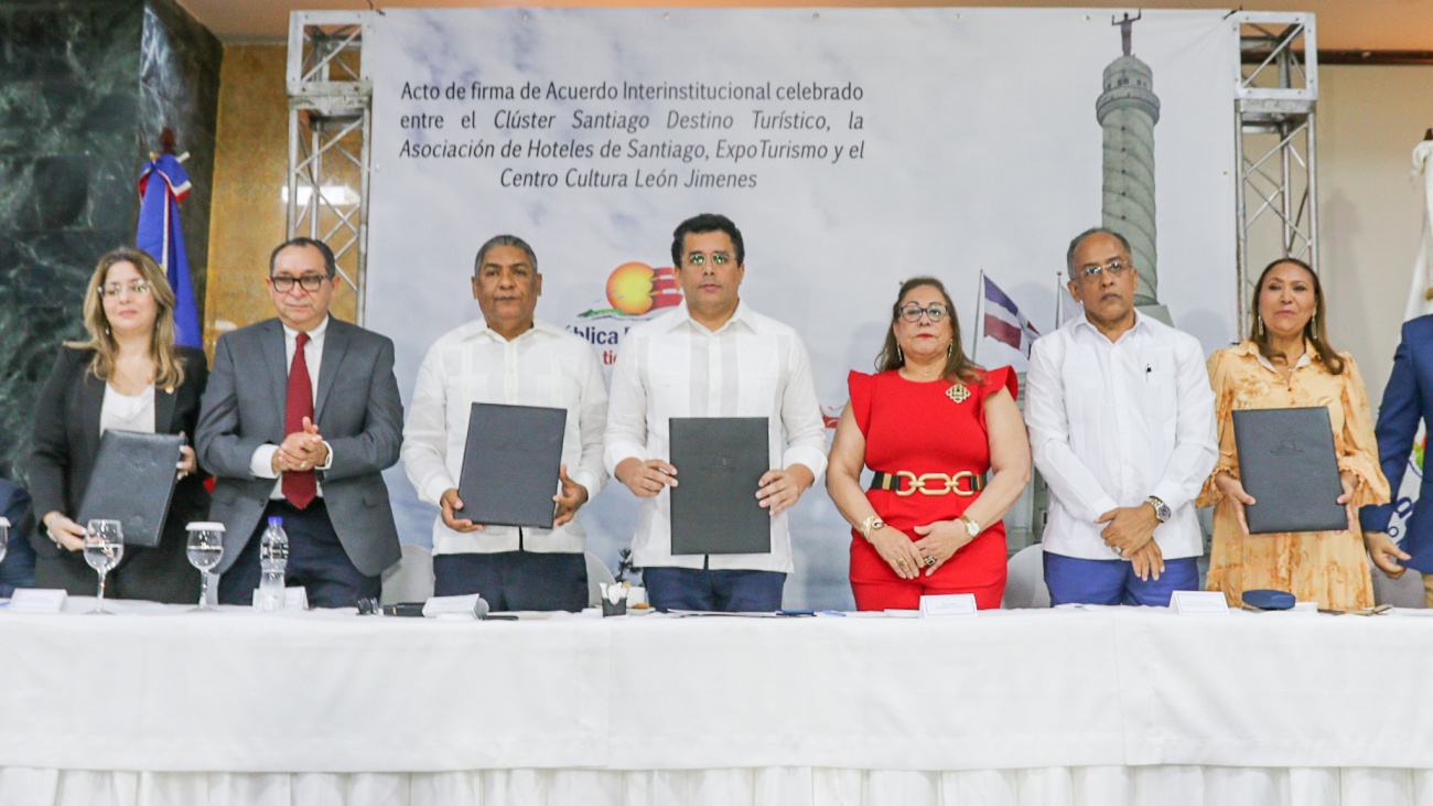 El convenio fue suscrito por David Collado por parte del Ministerio de Turismo y por el presidente del Clúster Turístico Santiago, Ramón Paulino, quien estuvo acompañado de German Ulises Polanco, presidente de la Asociación de Hoteles; Reynaldo Peguero, del Plan Estratégico; Yomaris Gómez, directora ejecutiva de Expoturismo, y María Luisa Asilis, gerente ejecutiva del Centro Cultural León.