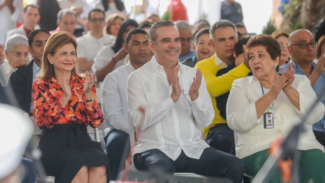 Presidente Abinader y Vicepresidenta Raquel Peña comparten con vecinos de la Casa Presidencial de Santiago