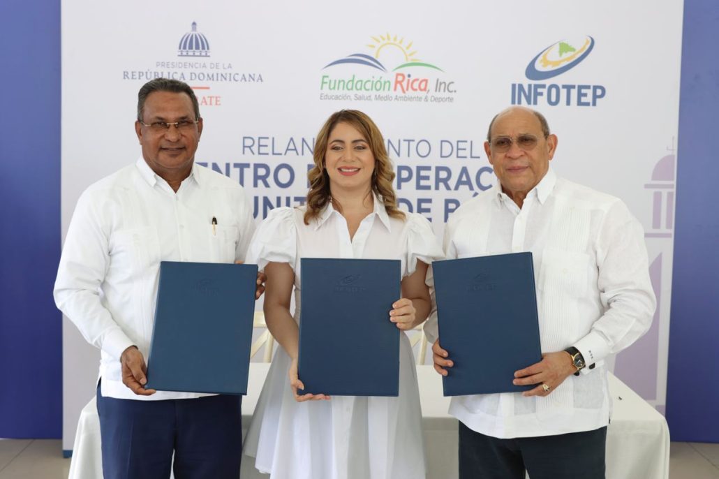 Villa Altagracia. – El programa Social Supérate, la Fundación Rica y el Instituto Nacional de Formación Técnico Profesional (INFOTEP) firmaron una alianza con miras a impulsar el desarrollo y promover la superación de la comunidad de Villa Altagracia, mediante la oferta de capacitaciones técnico-vocacionales y técnico-profesionales.