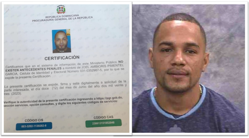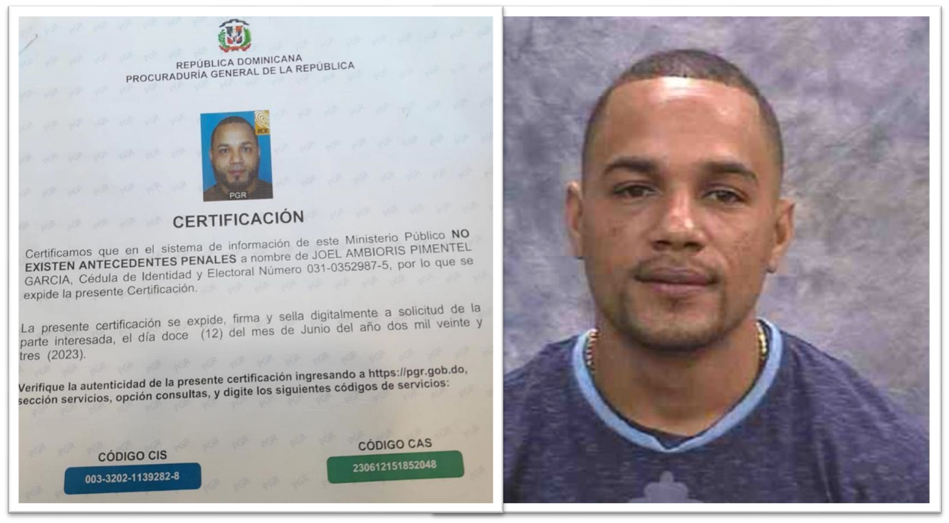 A pesar de que en registros de la Procuraduría General de la República dan cuenta de que Joel Pimentel García alias La J fue deportado de los Estados Unidos por casos de drogas y otros delitos, esta institución ha emitido un acta de no antecedente penales contra el principal sospecho de las amenazas que amenazan la vida de la procuradora Miriam Germán Brito.