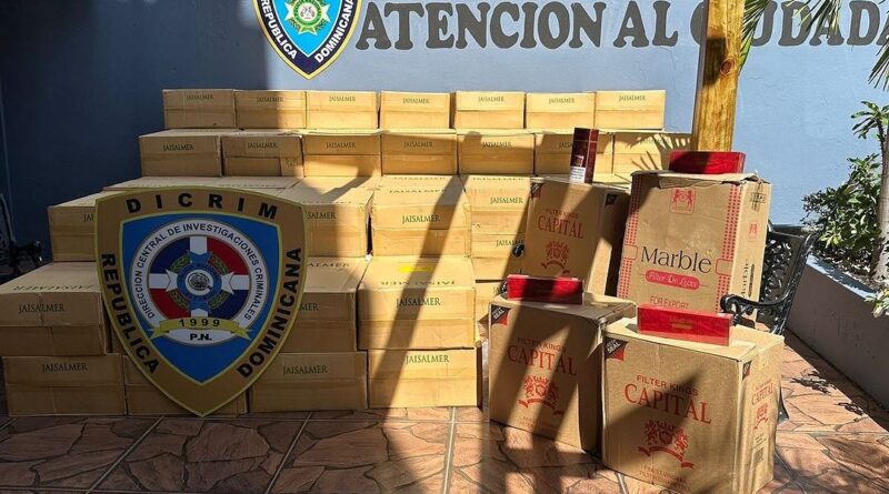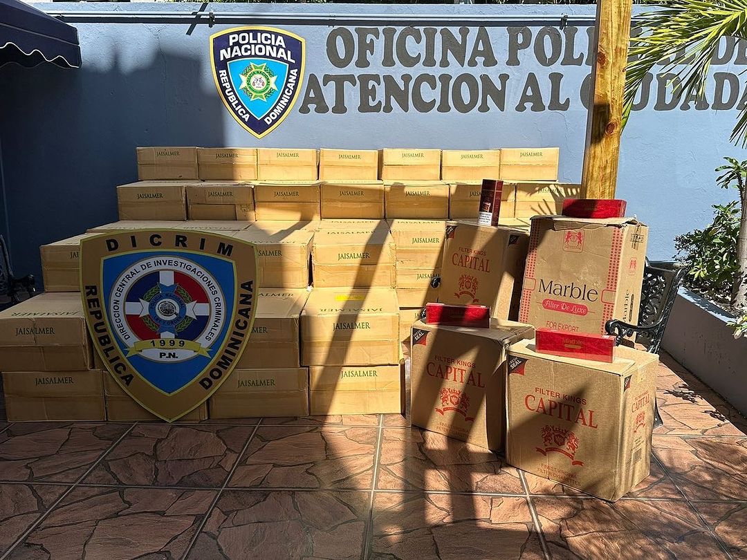 Agentes policiales, adscritos a la División de Tráfico de Mercancías, de la Dirección Central de Investigación (Dicrim), junto al Ministerio Público, ocuparon mediante allanamiento en el sector El Tamarindo, en Santo Domingo Este, un total de 565,000 cigarrillos que fueron traídos al país mediante contrabando.