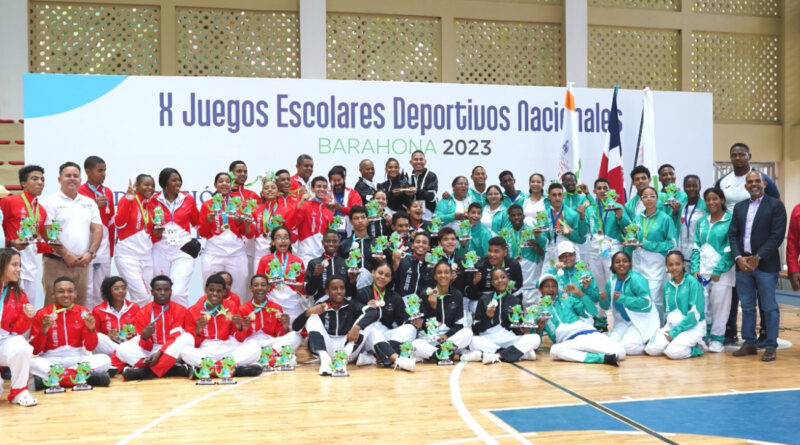 Barahona. La zona Cibao-Norte encabeza el medallero de los X Juegos Escolares Deportivos Nacionales Barahona 2023, tras entregarse este miércoles las primeras medallas en las disciplinas de karate, gimnasia y bádminton.