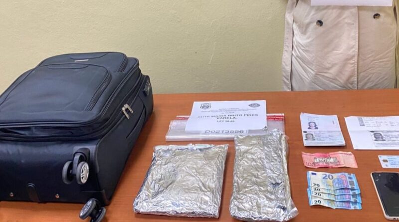 Santo Domingo.- Una mujer de nacionalidad portuguesa fue arrestada en el Aeropuerto Internacional del Cibao, provincia de Santiago, por agentes de la Dirección Nacional de Control de Drogas (DNCD) y miembros del Cuerpo Especializado de Seguridad Aeroportuaria (CESAC), cuando pretendía salir del país con dos paquetes de presumible cocaína, camuflados en su equipaje.